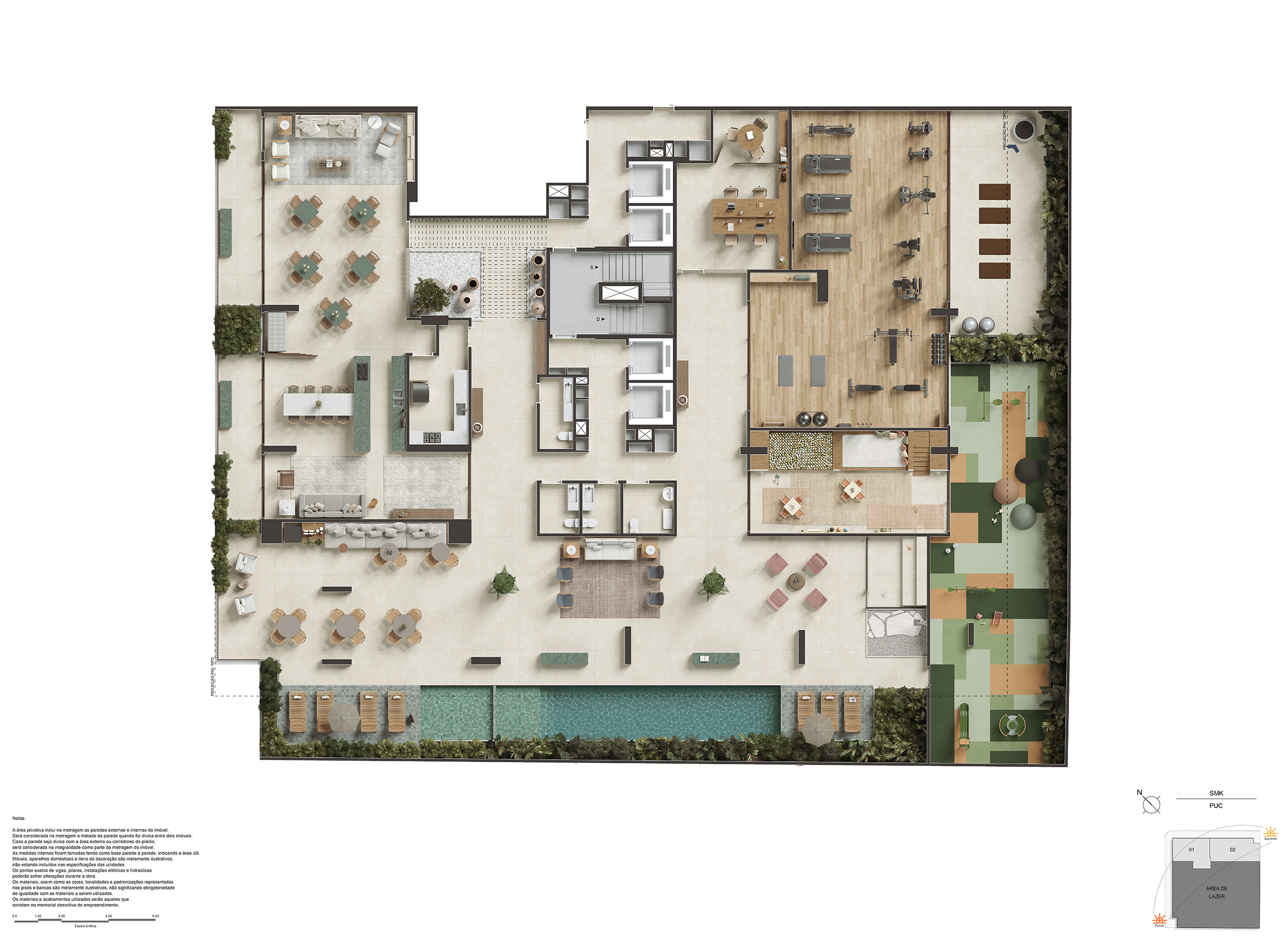 O brincar acontece em movimento, entre o conforto da brinquedoteca e a vitalidade do playground ao ar livre. Com área coberta integrada, os espaços foram projetados para estimular a imaginação e o contato com a natureza.