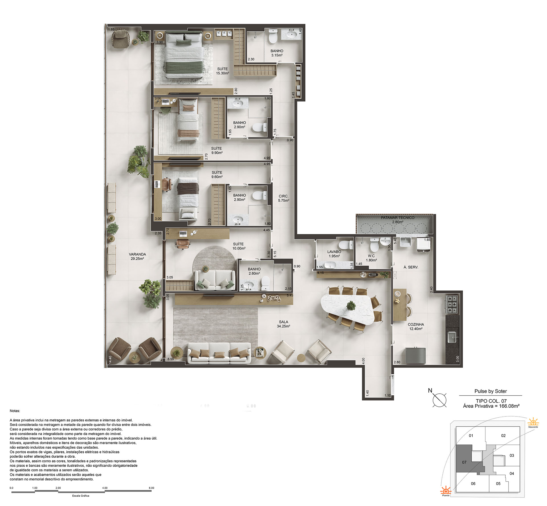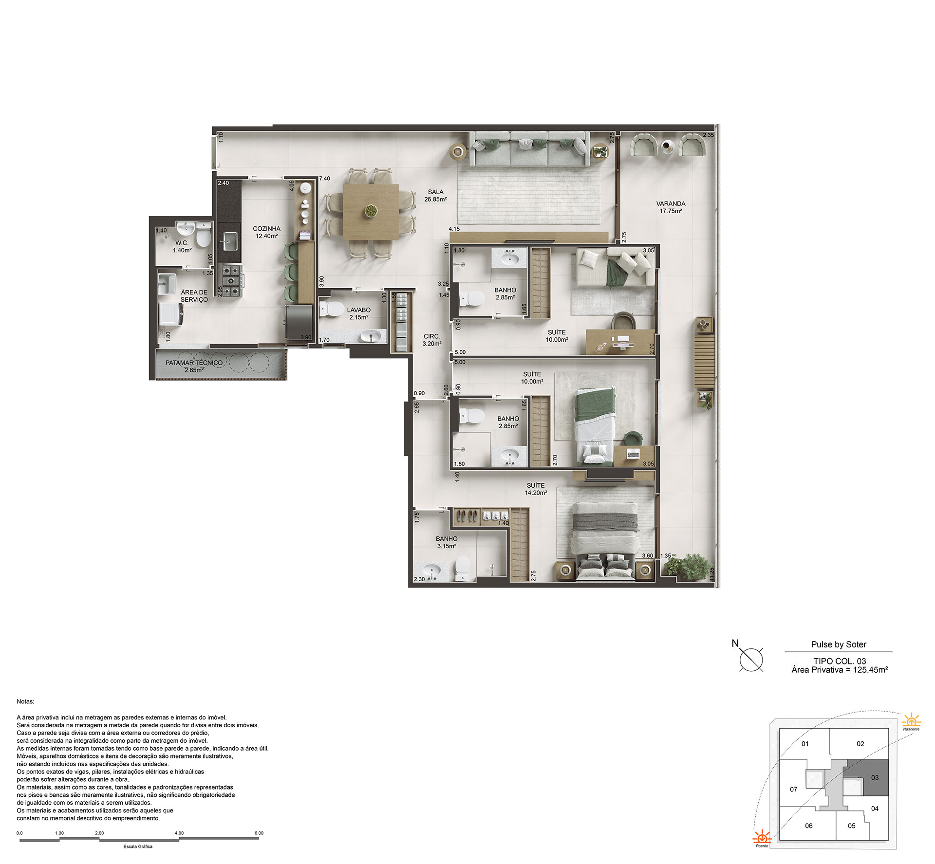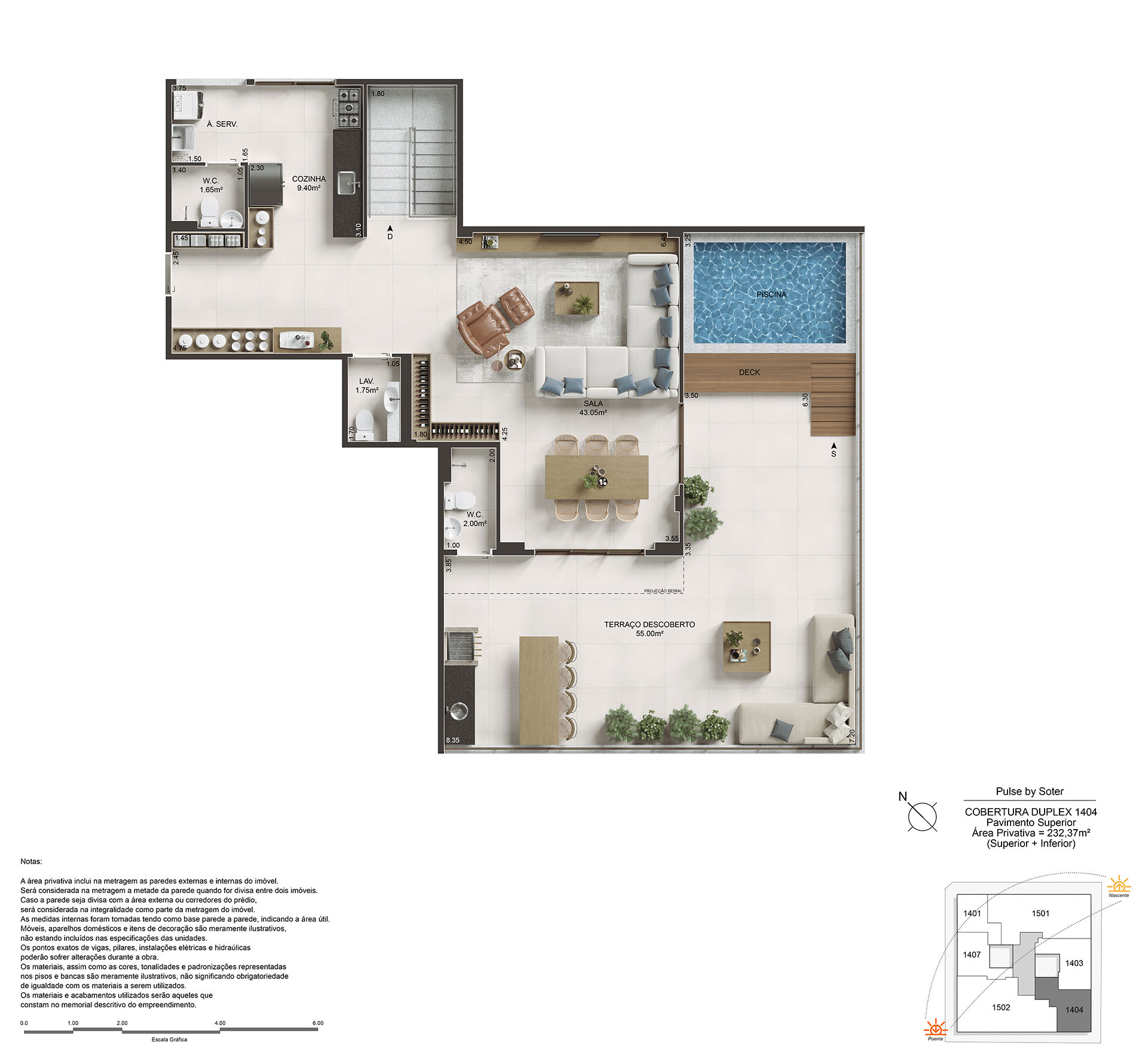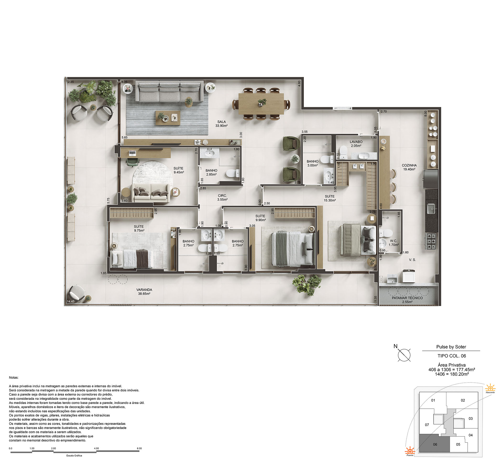 Amplos apartamentos de 89 a 180m² com até 2 vagas de garagem. Cobertura duplex de 232m² com 2 vagas de garagem.